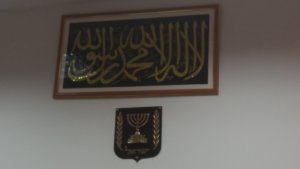 Az Izraellel való kapcsolatról még annyit mond, hogy nézzem csak meg, mi van az irodájában. Hatalmas Izrael-zászló, és a címer, és fölötte a muszlimok hitvallása. Arra gondolok, hogy persze, hogy ott vannak az állami szimbólumok, hiszen egy, az állam által fenntartott intézmény irodájában vagyunk. És arra, hogy teljesen feleslegesen kérdezném meg, hogy mennyire örül a dávidcsillagos zászlónak, úgyis azt mondaná, hogy itt van az a lehető legjobb helyen a világon.